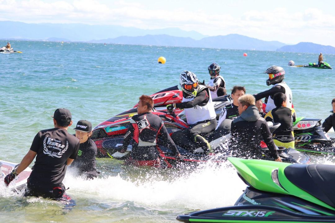 本大会は年に一度、世界中のジェットスキープロライダー達が集まり国別対抗でもあり、ジェットスキーレースの最高峰の大会になります。